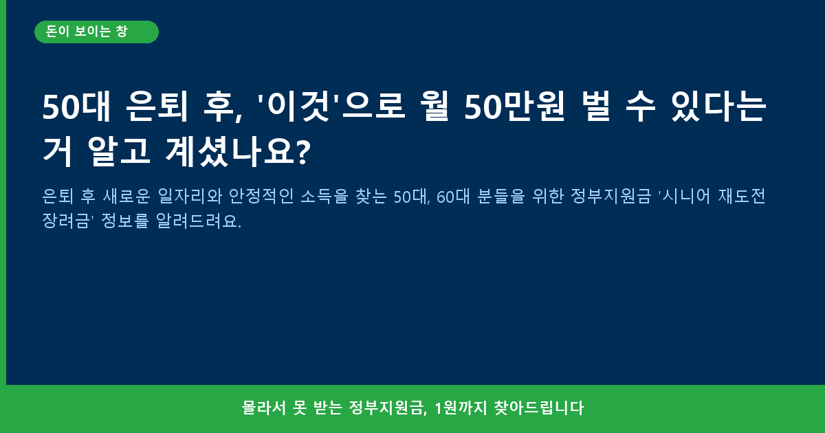 안녕하세요, ‘돈이 보이는 창’ 블로그 지기입니다. 오늘은 우리 50대, 60대 이웃님들의 노후 생활에 든든한 버팀목이 되어줄 정부지원금 소식을 가지고 왔어요. 많은 분들이 은퇴 후 소득 단절이나 재취업의 어려움 때문에 걱정이 많으실 텐데요. 마치 러닝화만 신던 시대가 지나고 더 편하고 기능 좋은 운동화가 ‘초대박’이 난 것처럼, 정부에서도 우리 어르신들이 새로운 도전을 통해 안정적인 소득을 얻으실 수 있도록 특별한 지원책을 내놓았답니다. 바로 ‘시니어 재도전 장려금’인데요, 이 장려금은 단순히 돈만 주는 게 아니라, 새로운 기술을 배우고 취업까지 연결해 주는 아주 실용적인 지원금이에요. 지금부터 이 장려금의 핵심 내용을 자세히 알려드릴게요.