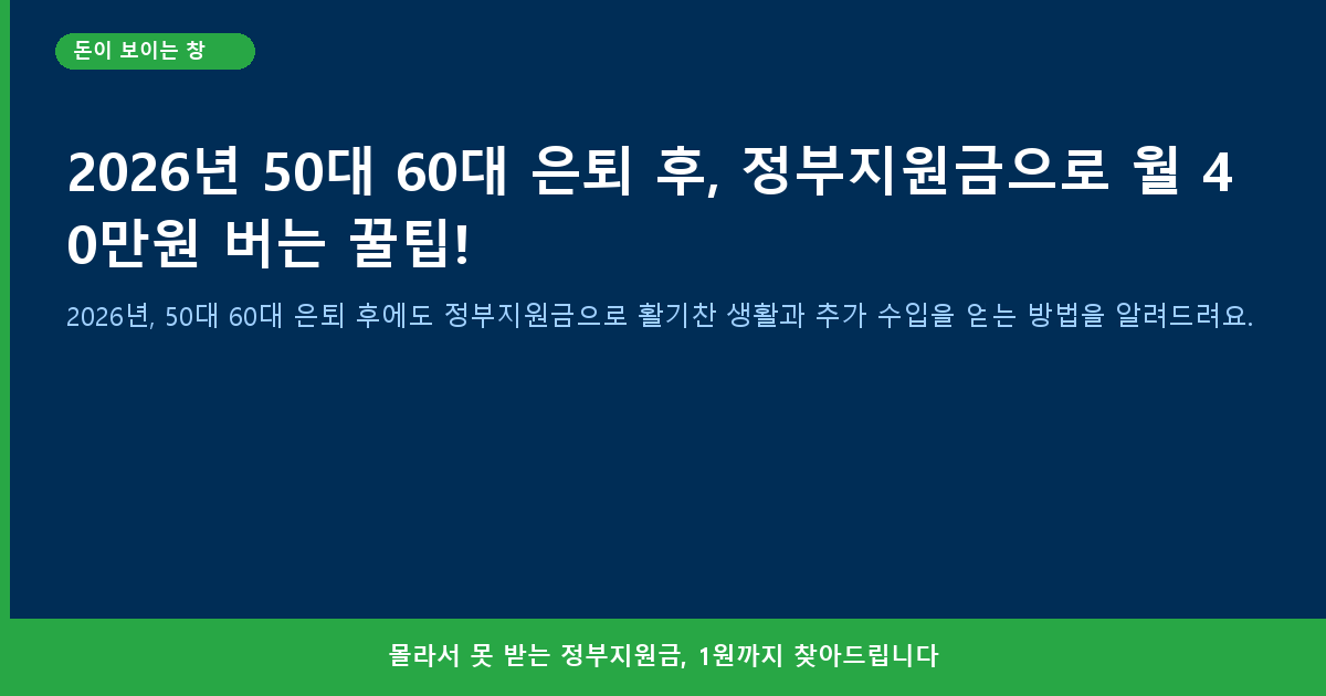 안녕하세요, ‘돈이 보이는 창’ 이웃님들! 혹시 은퇴 후에 찾아올 경제적인 걱정, 또는 집에서 마냥 쉬는 것이 지루하게 느껴질까 봐 고민해보신 적 있으신가요? 아직 건강하고 활기 넘치는 우리 50대, 60대 이웃님들을 위해 정부에서 든든한 지원을 해주고 있다는 사실, 알고 계셨나요? 바로 ‘노인일자리 및 사회활동지원사업’ 인데요, 2026년에도 이 사업은 계속될 예정이고, 우리 이웃님들이 보람 있는 활동을 하면서 생활비까지 벌 수 있는 아주 좋은 기회가 될 거예요. 단순히 돈을 버는 것을 넘어, 사회에 기여하고 새로운 사람들을 만나며 건강까지 챙길 수 있는 일석삼조의 기회랍니다. 고령화 시대에 맞춰 정부에서도 어르신들의 활기찬 노년을 위해 많은 노력을 기울이고 있으니, 절대 놓치지 마세요.